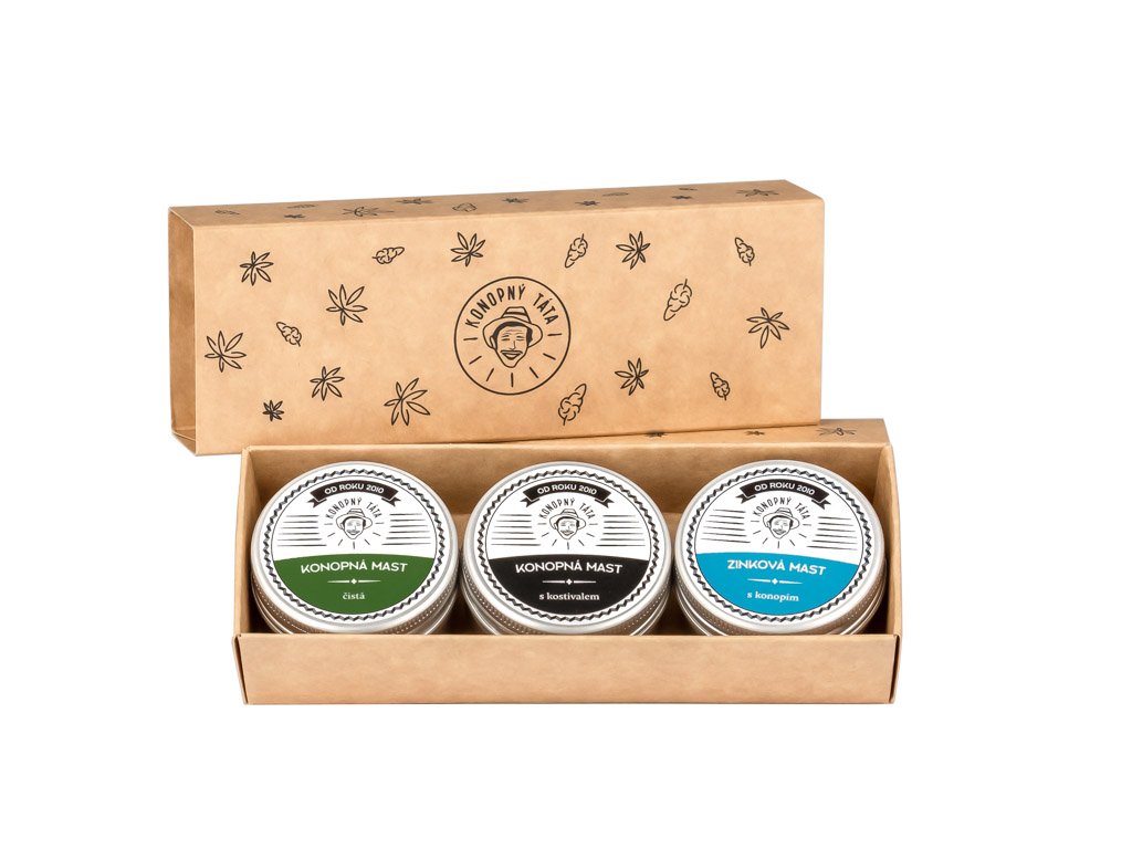 Konopný Táta Hemp Ointment Trio Pack brings together three of the most popular hemp-based ointments in compact 15 ml jars. Their pocket-friendly size makes them ideal for daily use at home, at work or on the go.