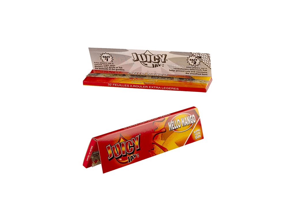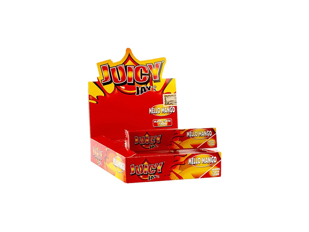 Juicy Jay’s King Size Slim Mello Mango brings sweet, tropical mango flavor in ultra-smooth burning rolling papers.