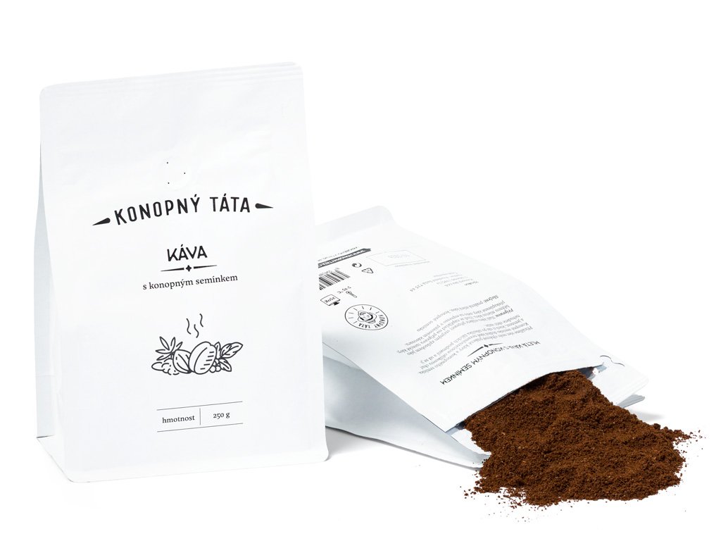 Konopná káva značky Konopný Táta vznikla spojením čerstvě pražené kávy a konopných semínek, která nápoji dodávají jemnost a příjemně kulatý chuťový profil.