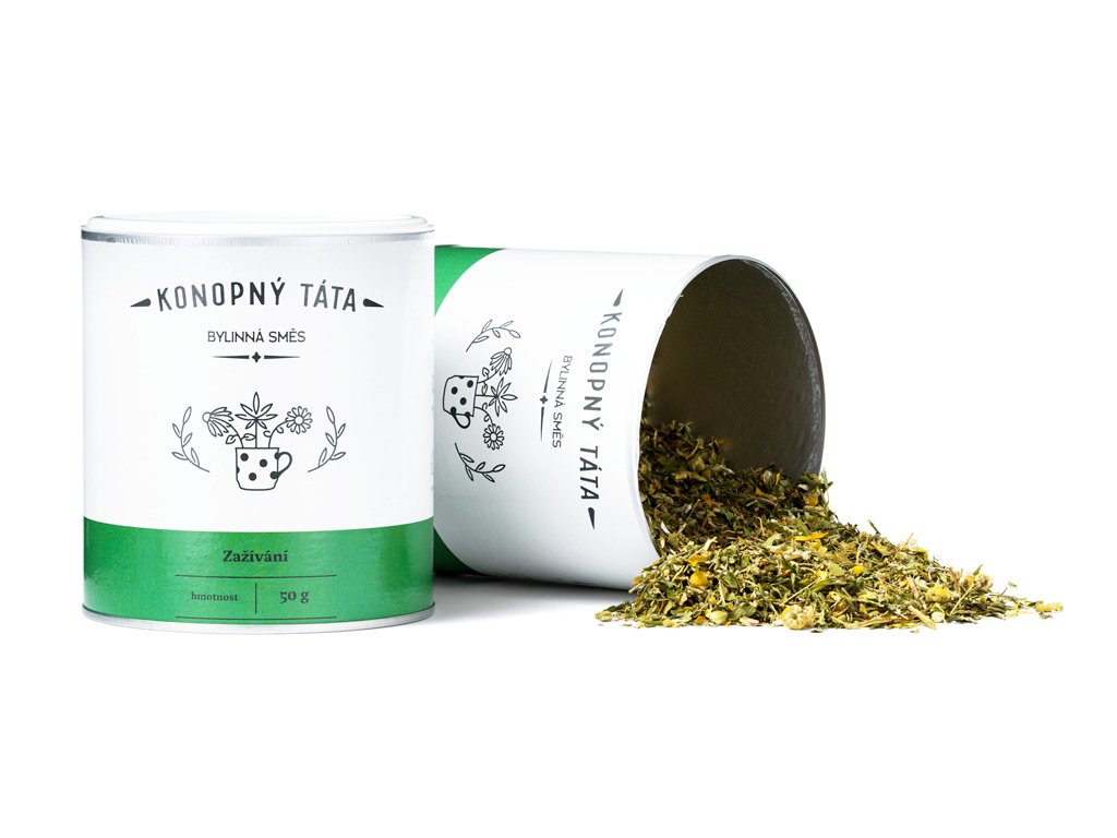 Konopný čaj Zažívání značky Konopný Táta je pečlivě namíchaná bylinná směs s 70 % obsahem konopí, doplněná o mátu, fenykl, heřmánek, měsíček, zeměžluč a další tradičně používané byliny.